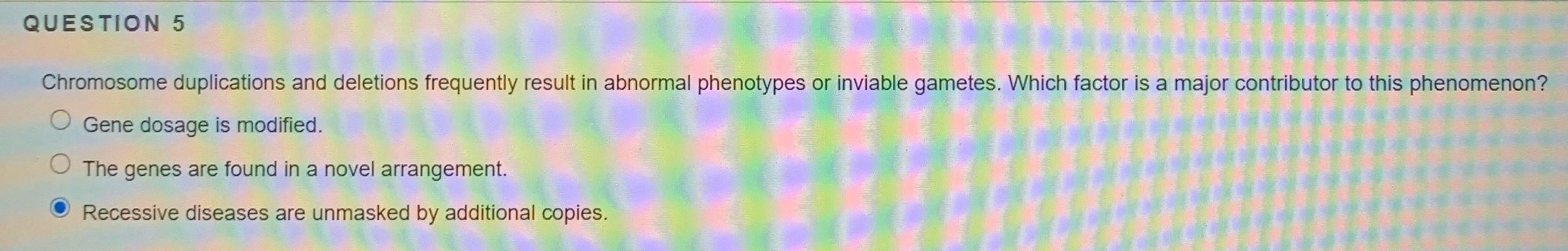 Solved Question 5 Chromosome Duplications And Deletions Chegg Com